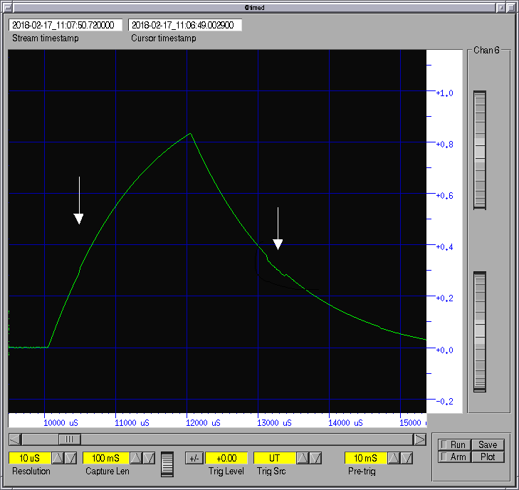 In this RC-shaped pulse, the artifacting is indicated by the arrows.